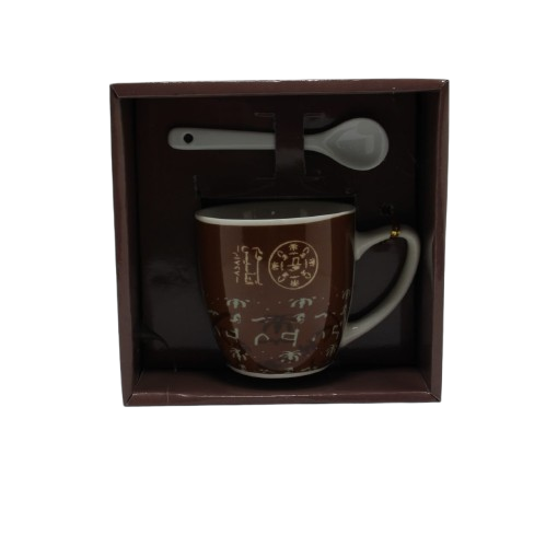 كوب سيراميك مع ملعقة وعلبة